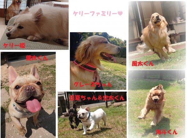 開業当時からず〜〜〜っと来てくれている日本スピッツのケリー姫を筆頭に、ゴールデンのグレースちゃん、その息子たちの海斗くんと風太くん、フレブルの日夏ちゃんとその息子の健太くん、そして同じくフレブルの空太くん♪