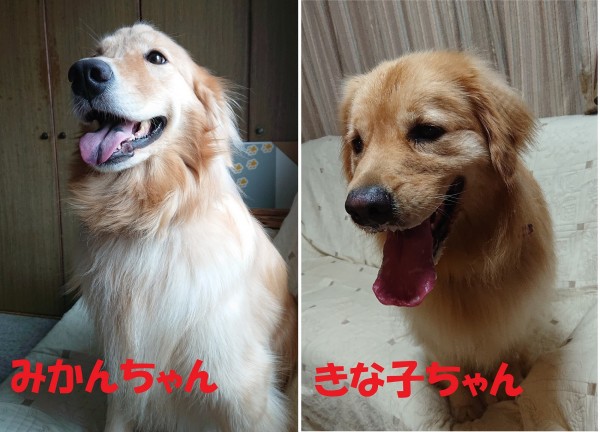 ゴールデンレトリーバーのみかんちゃんときな子ちゃん♪